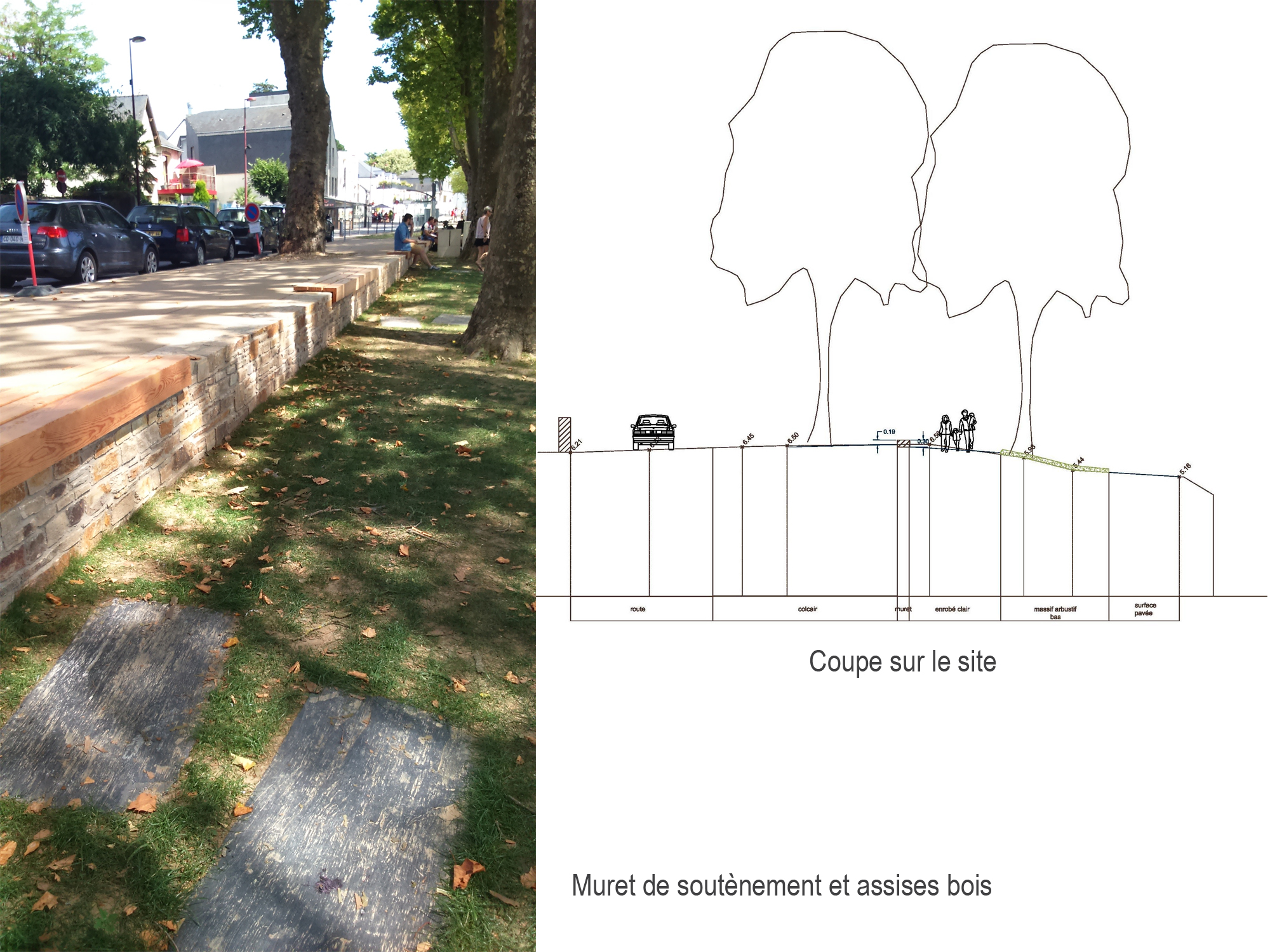 Les usagers profitent d’un square où s’arrêter, se reposer, être en contact étroit avec le plan d’eau de l’Erdre et bénéficier des services de proximité (sanitaires publics, stationnements) et des activités de loisirs (locations de canoës, promenades sur l’eau, café et restauration.